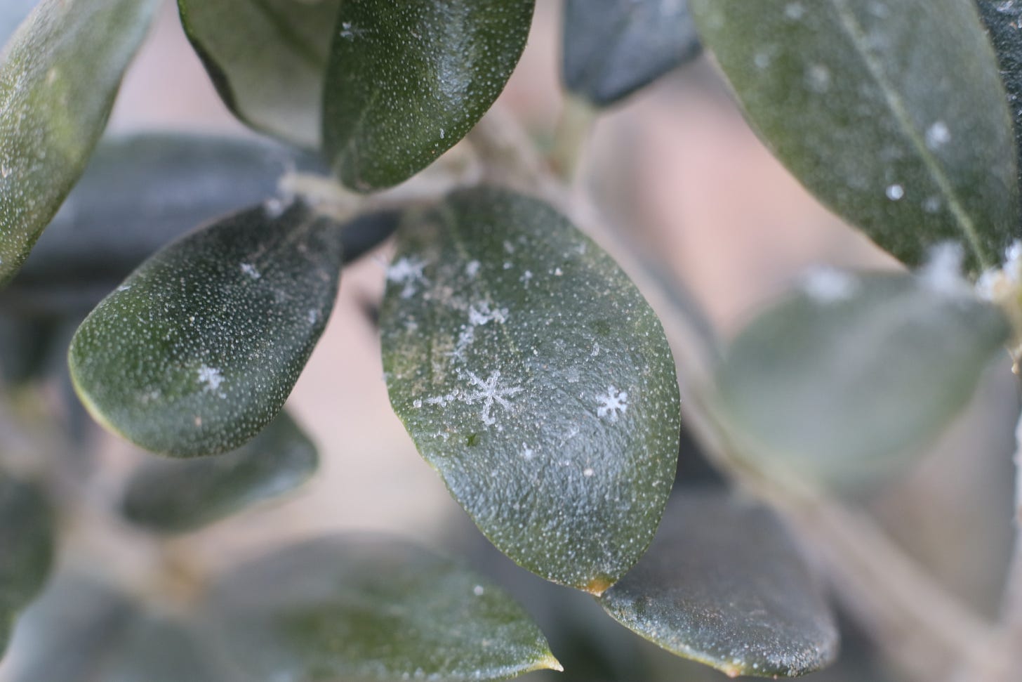Beautiful capture of snow on the olive bush! Been cold for all you Southern folk ...