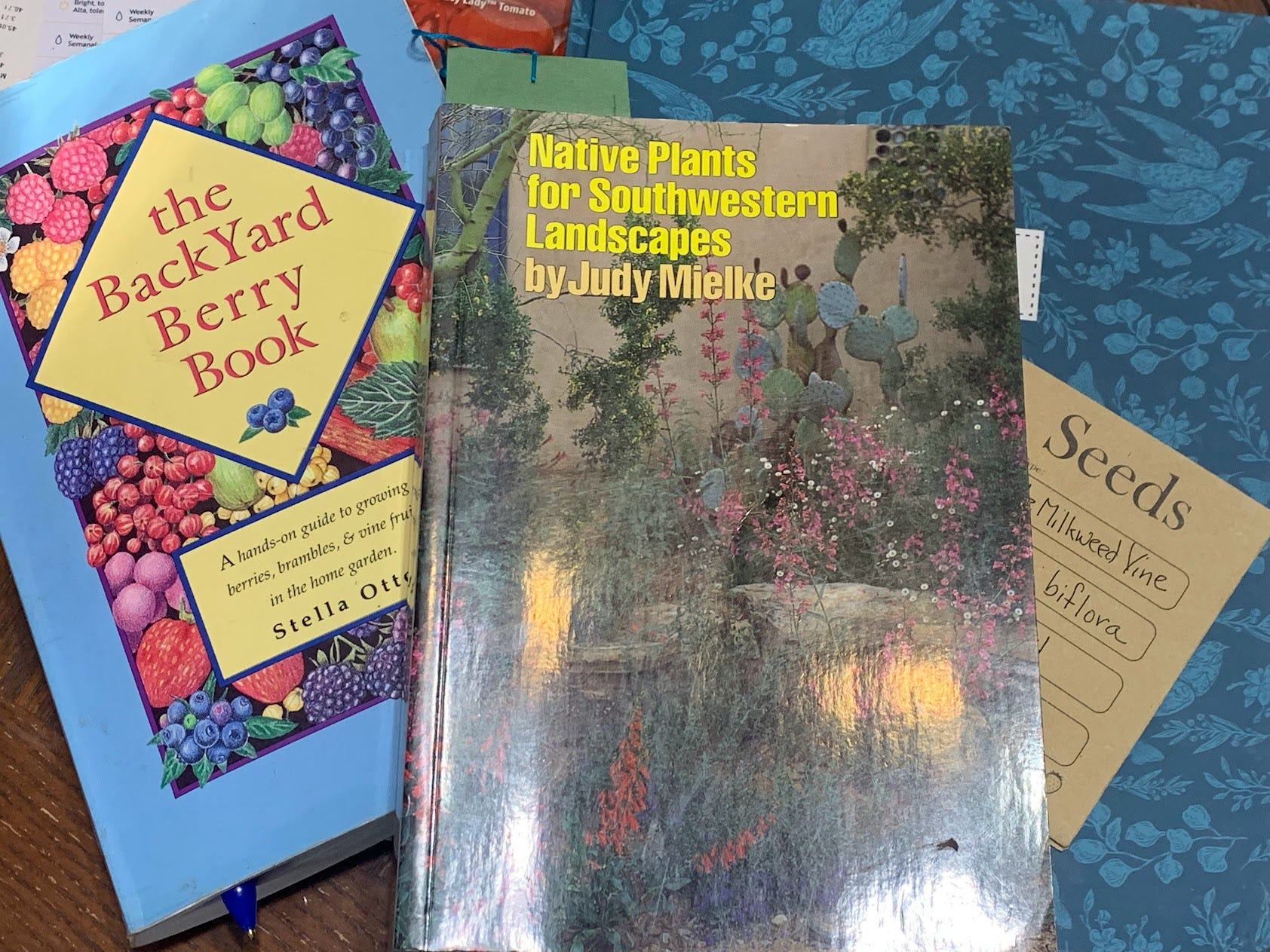 In aid of finding plants that will be happier to my area, being native, I have found a few books which may not apply directly to me, but will help me get ideas. Native Plants for Southwestern Landscapes (1993) by Judy Mielke is one of them. I’ve really enjoyed it. She is focused on plants for the deserts which stretch from Texas over to California, but some of them will grow for me, and I’ve seen in the wild near my home. The book is laid out more like a field guide, with encyclopedic entries for each plant, and color photos interspersed between pages of detailed descriptions and planting suggestions. I appreciate the inclusion of temperature lows the plant can tolerate, as this hints me towards the ones I can keep. Some are from much further south. Someone in the Hill Country of Texas could grow almost all of these, which makes sense when you see the book was published by University of Texas Austin.
