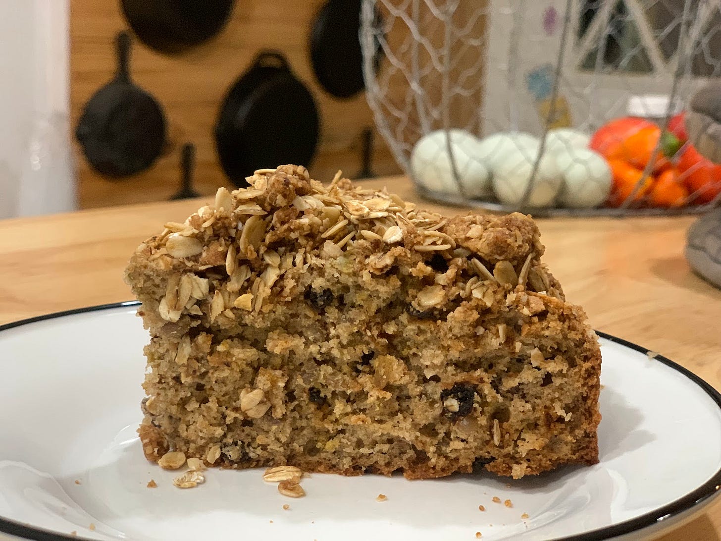 This bread/cake/whatever-you-call-it will be a little too crumbly for sandwich bread, but it works as a side for a meal, a coffee cake for breakfast, a high-protein snacking muchable, toasted with butter (and jelly if you like, my sweet is not very sweet at all) the next morning.