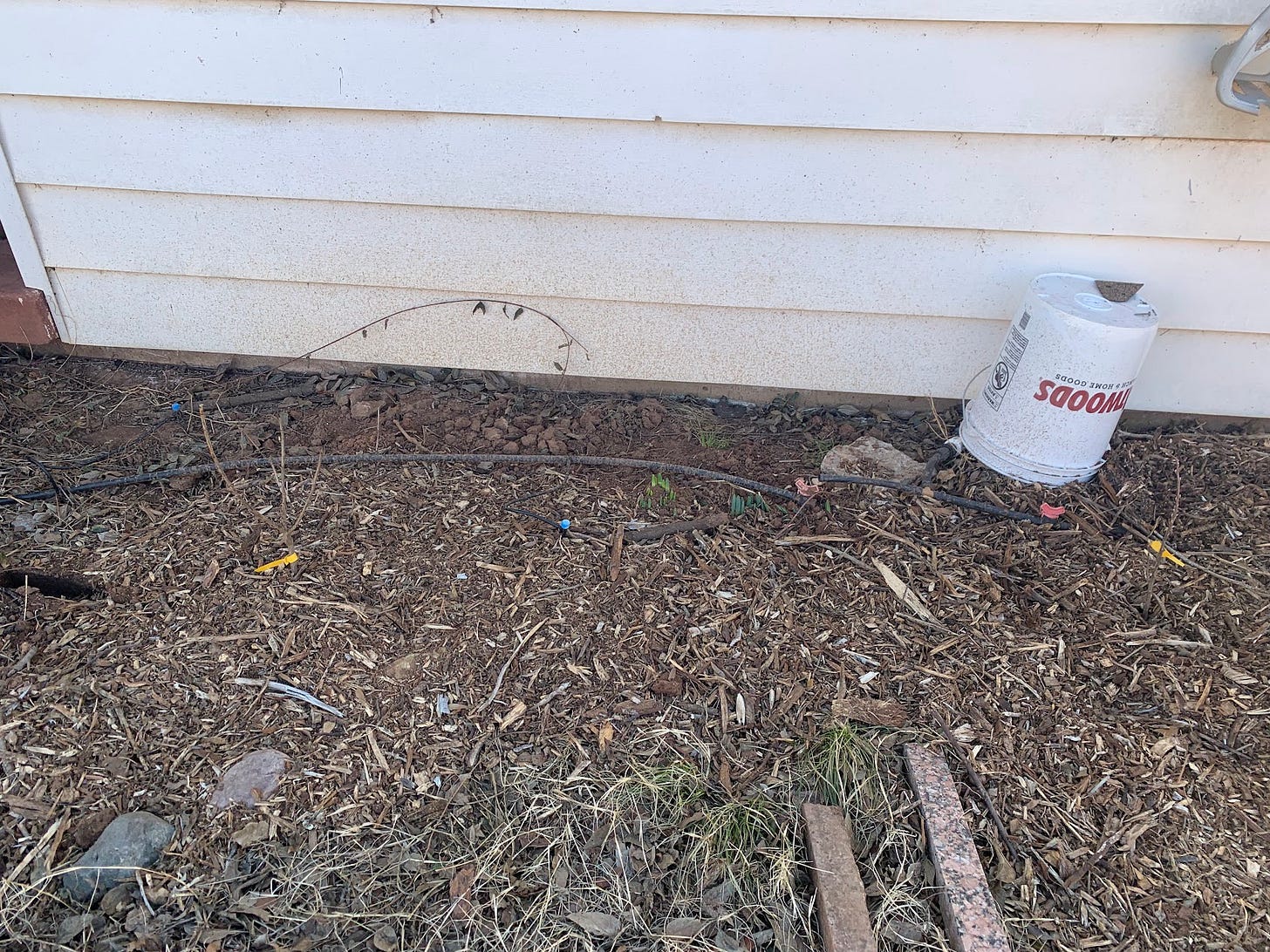 The garden is facing false spring, as the temperatures rise after we did get some rainfall last week. We got a measured total of 0.16” of rain which is not enough. I’m going to take advantage of the warm weather to get my drip lines finished up and turned back on. I’d winterized the lines due to cold, and may have to do that again when the weather inevitably turns cold again, but I’m not going to let the dry stop me in my tracks.