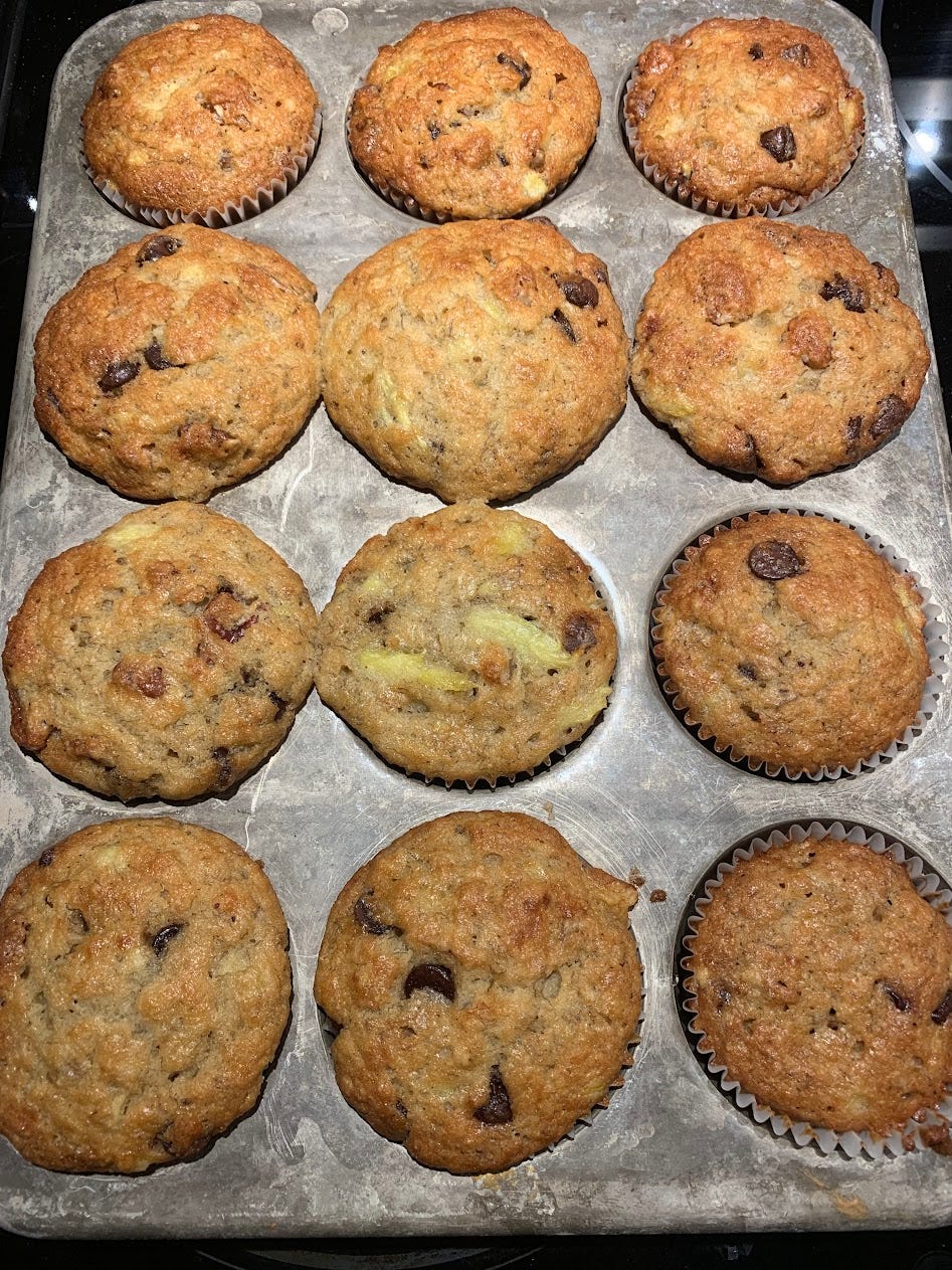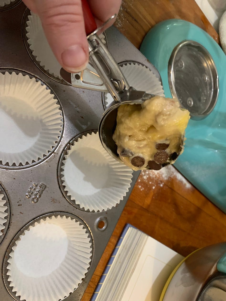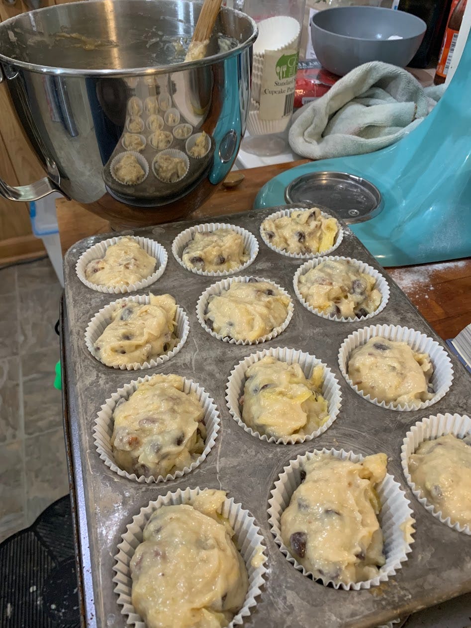 Preheat the oven to 350F. Prepare two muffin pans with cupcake liners, or grease the tins very well. This will make about 24 regular size muffins.
