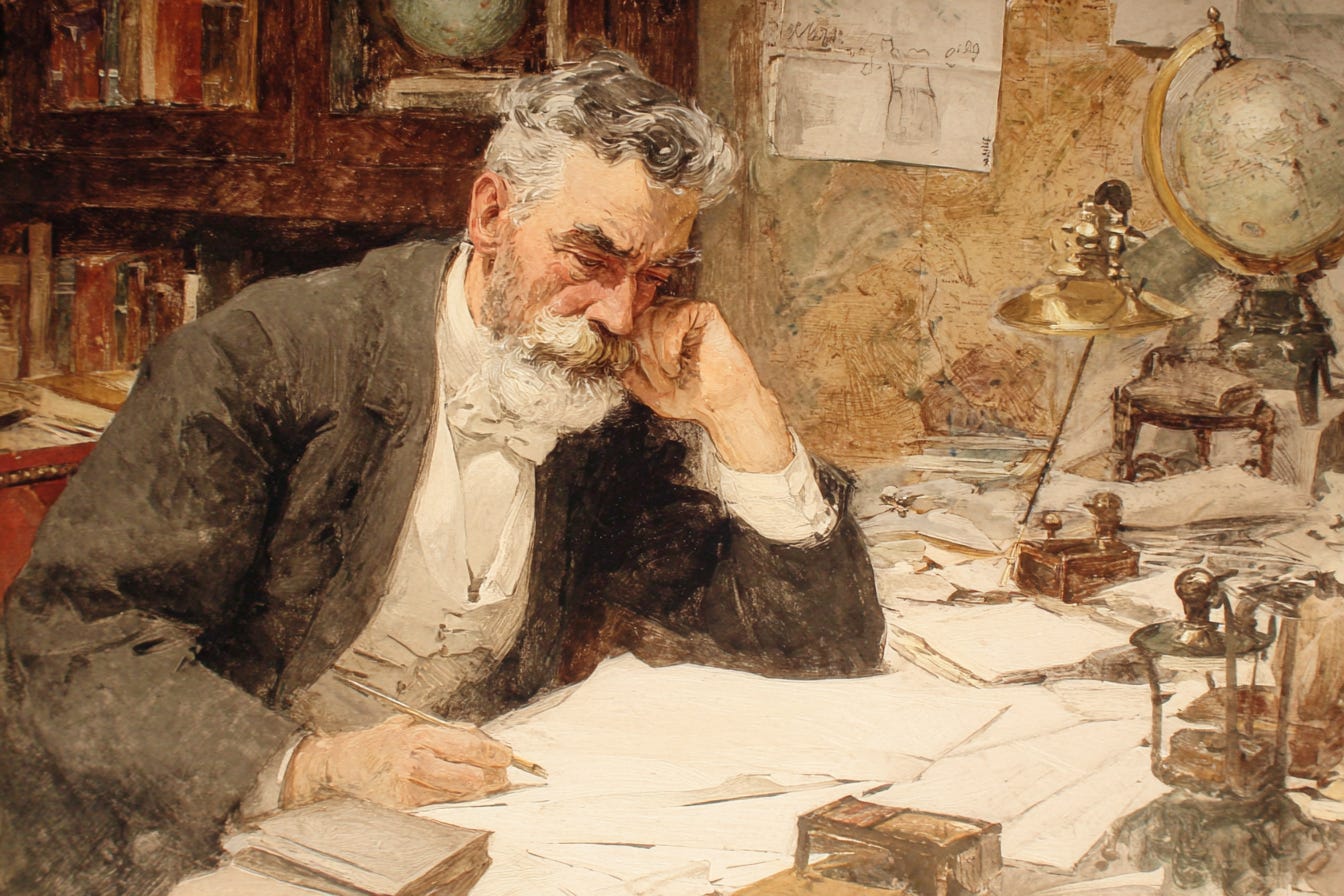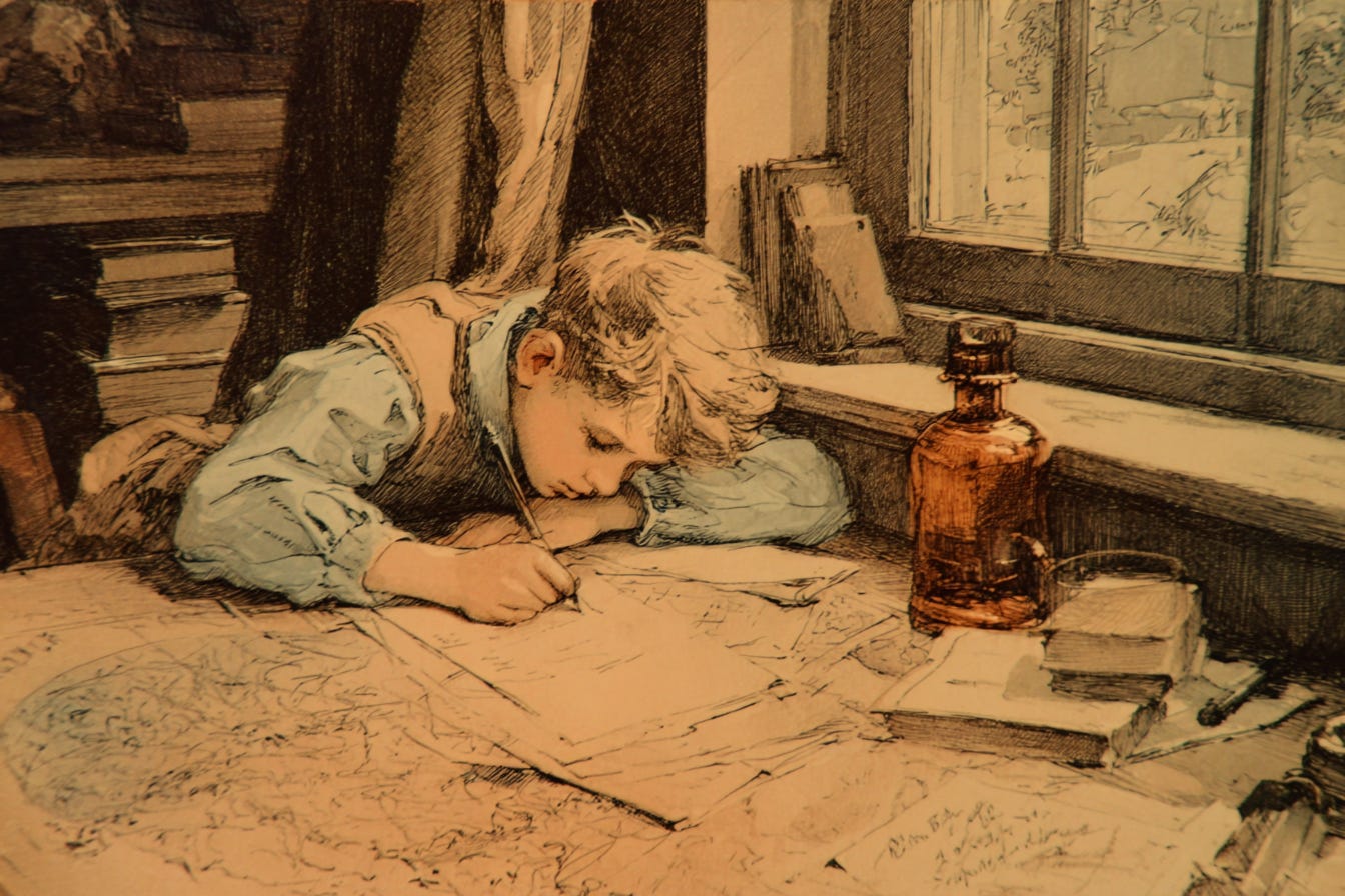 What is it he pretends to write?