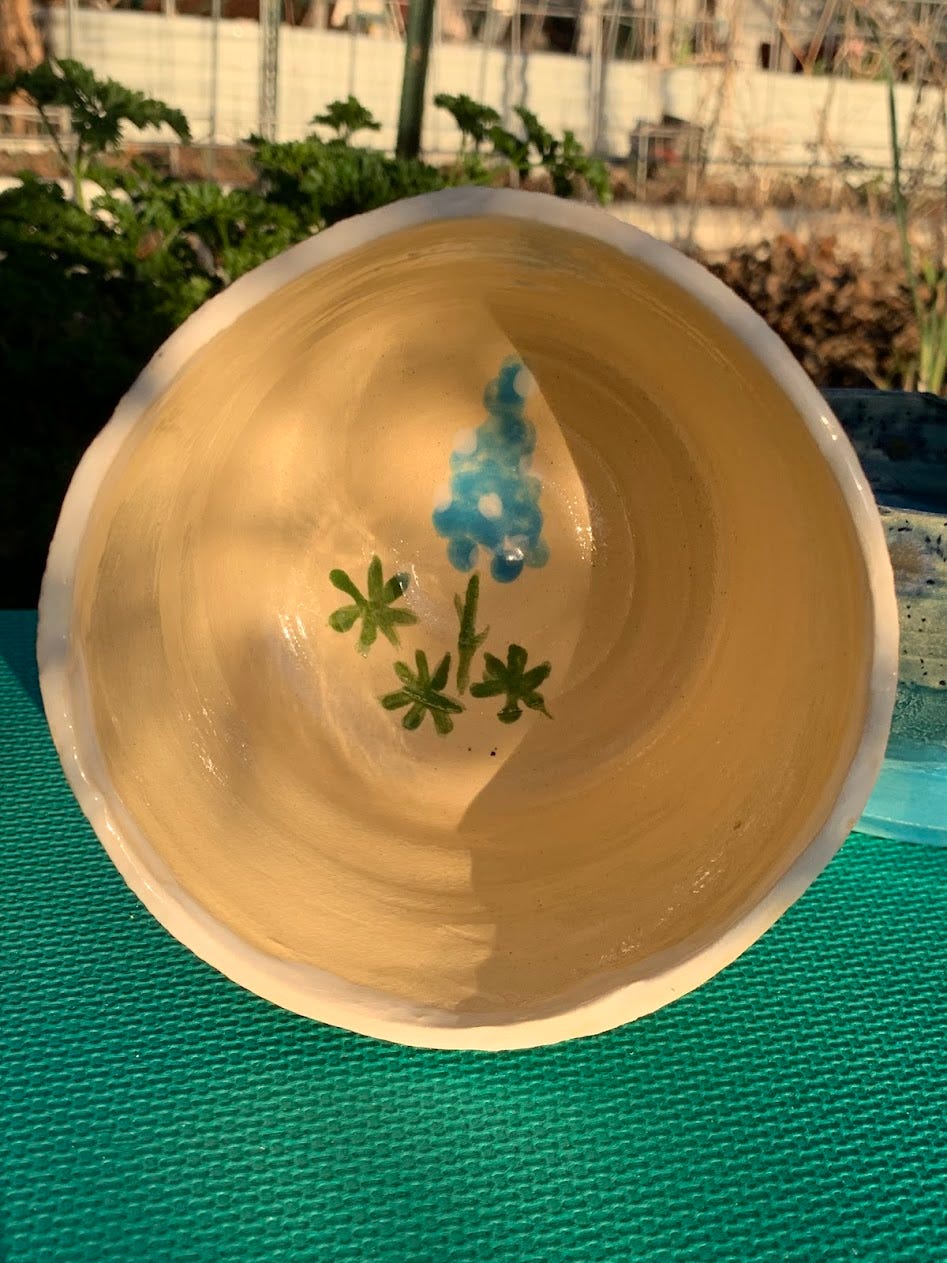 I threw pots for the first time in over twenty years recently. A local potter opened a studio, and in addition to having people come in, glaze molded ceramics, she also had classes, wheels and hand-building spaces. A dear friend strongly encouraged me to go in with her, first we just painted the already-fired ceramics, which was fun. Then I was given a Christmas gift of a class. So of course, I chose to sign up for a wheel-throwing class.