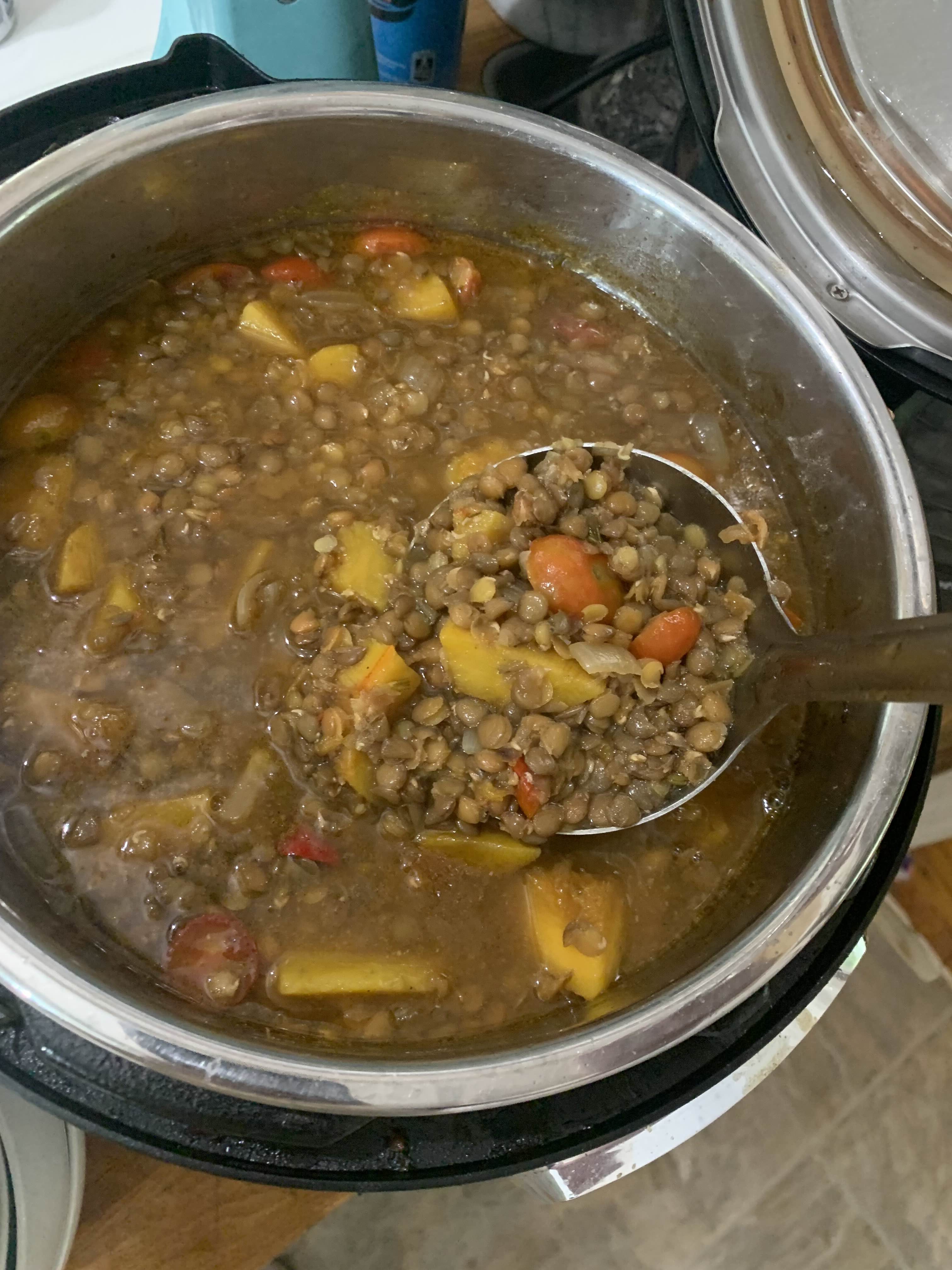 The lentil soup of course, was also me using up pantry staples so I could rotate stock, and a pie pumpkin I’d picked up, and oh yes, the tomatoes are still giving bounteously.