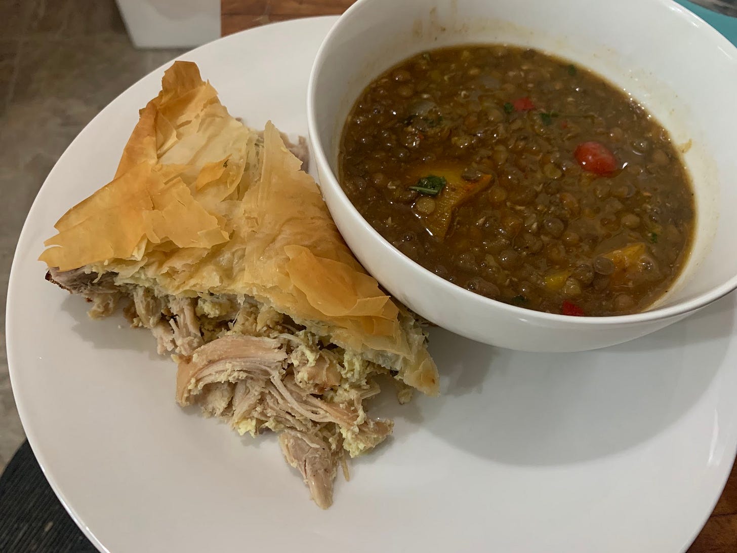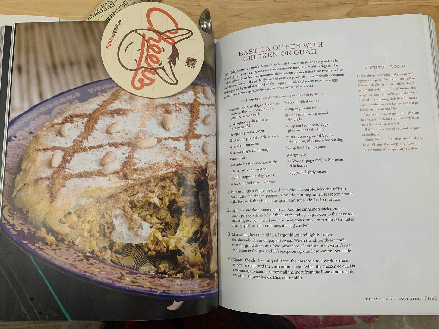I knew immediately I was not going to play the Bastila of Fes straight up. Some of the supper group are very familiar with and enjoy the sweet-and-savory dishes. More of them are not, so the cinnamon and sugar coating on the chicken pie was a no-go. Due to nut allergies, the almonds were omitted, but that’s just my family, yours likely would enjoy them.