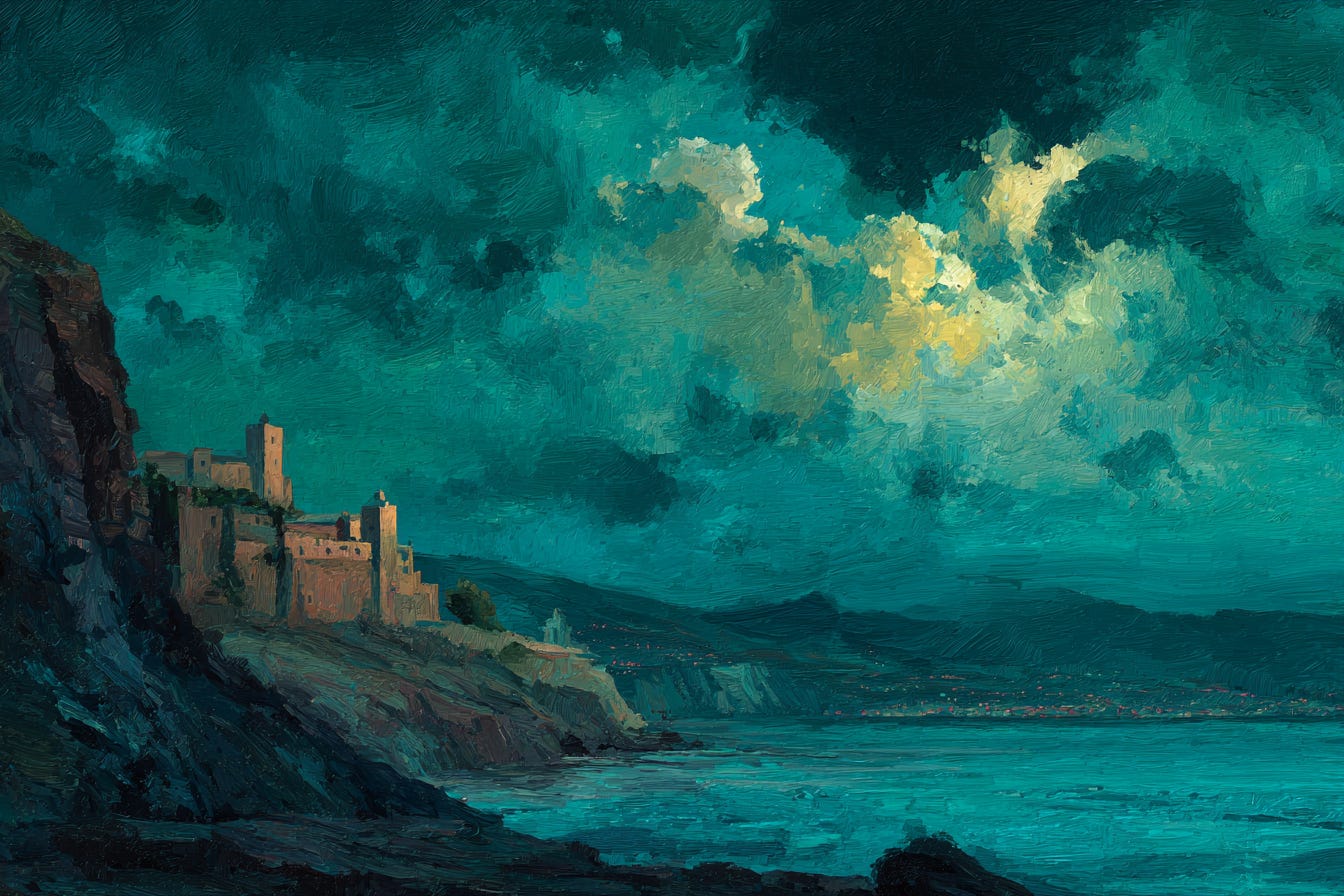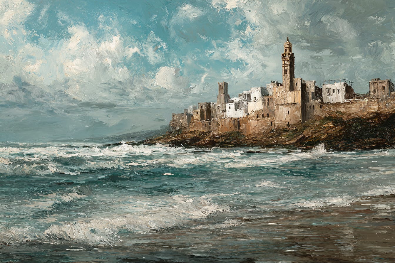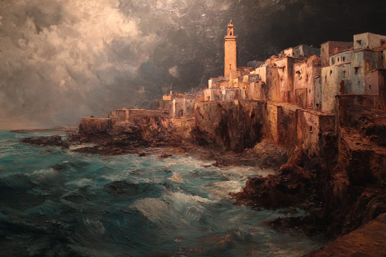 On a storm-lashed shore, -