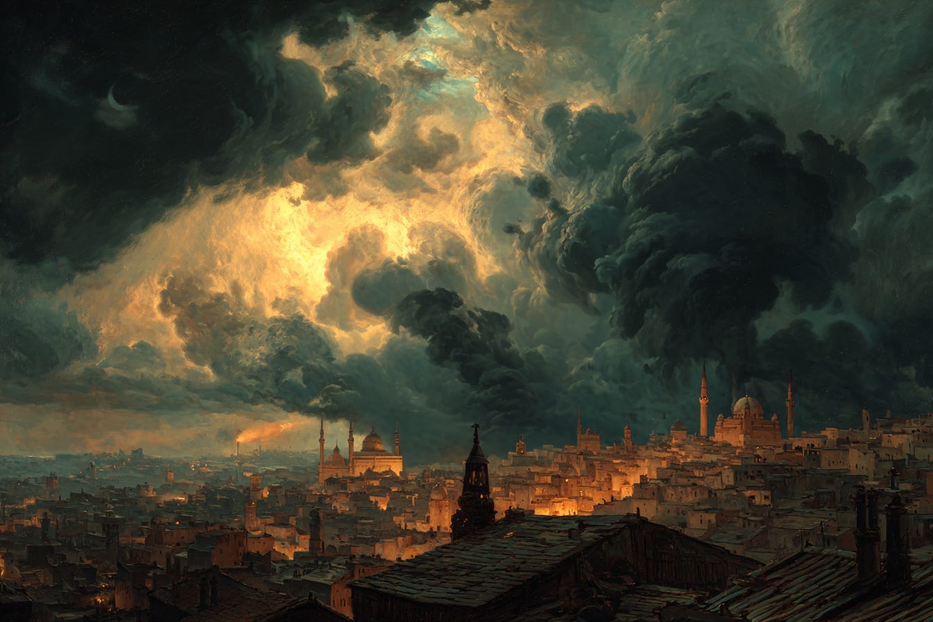 Like a livid thunder-cloud